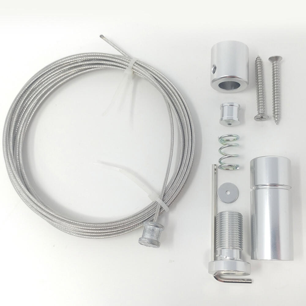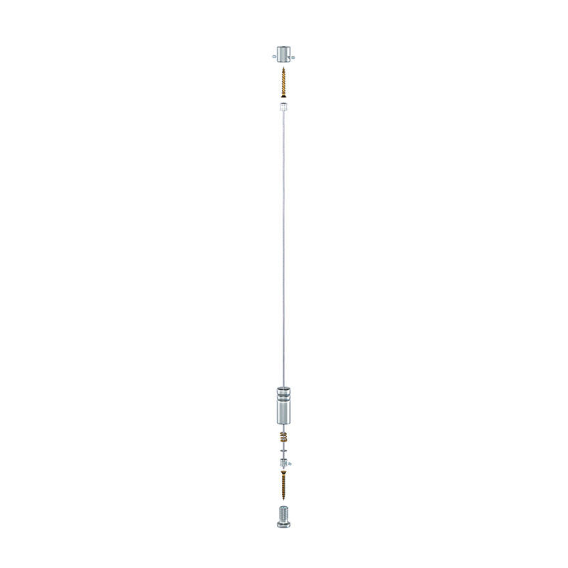 Le Kit Sol/Plafond pour systèmes de câbles d’affichage suspendus est fabriqué en aluminium anodisé. Ces kits sont utilisés pour suspendre et afficher de nombreux articles.