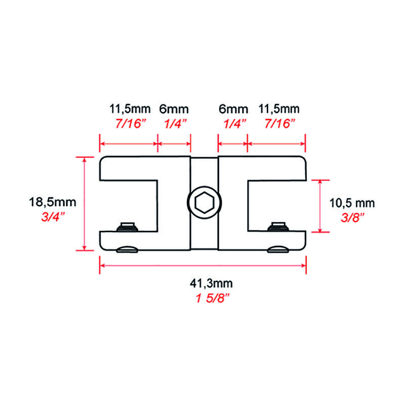 Ajoutez 9mm à gauche et 9mm à droite de votre tablette pour calculer la distance entre chaque tige de ∅ 6mm.