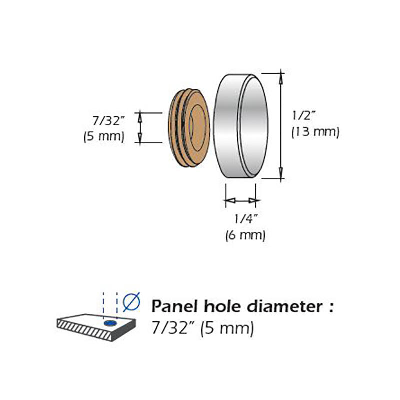 Le Cache-Vis en laiton fourni par Mustang Systems vous permet de mettre votre signalisation en évidence. – ∅ 19mm (3/4″) – Perçage du panneau; ∅ 6,5mm (1/4″)