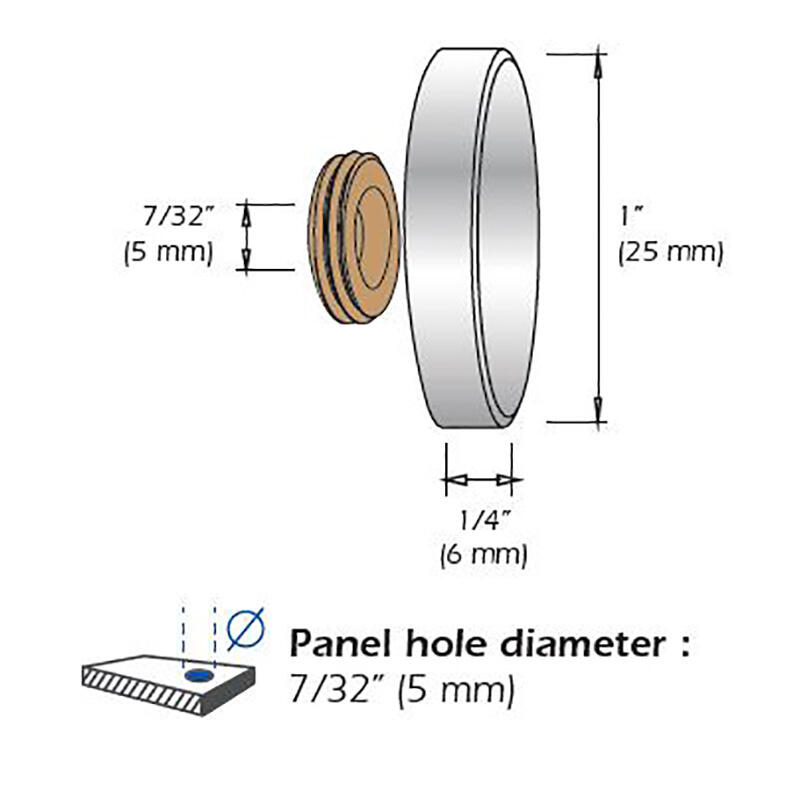 Le Cache-Vis en laiton fourni par Mustang Systems vous permet de mettre votre signalisation en évidence. – ∅ 19mm (3/4″) – Perçage du panneau; ∅ 6,5mm (1/4″)
