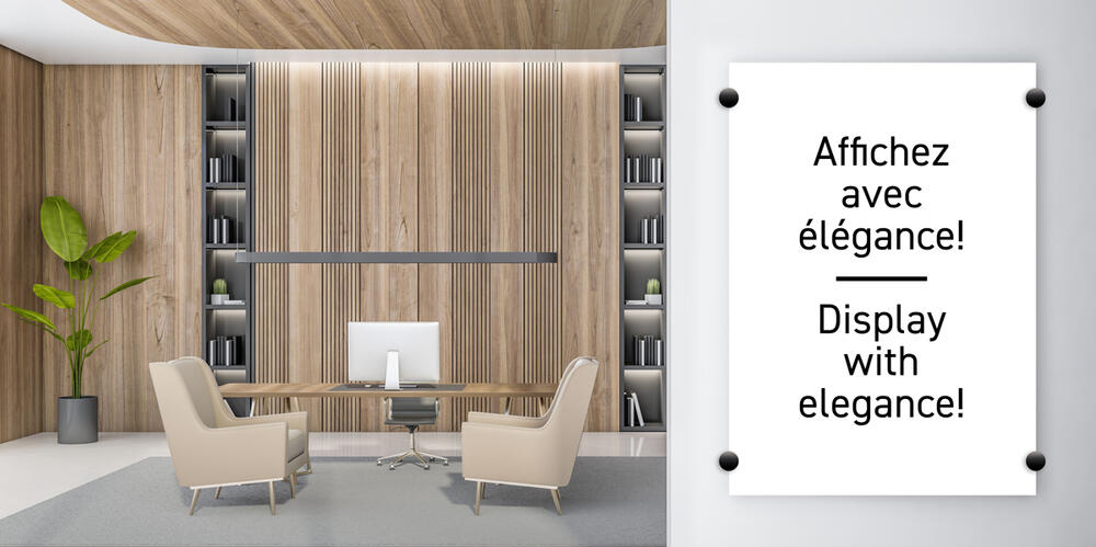 Les Entretoises Murales (Fendues) fournies par Mustang Systems sont fabriquées en aluminium avec une finition anodisé et vous permettent de rehausser votre signalétique.
