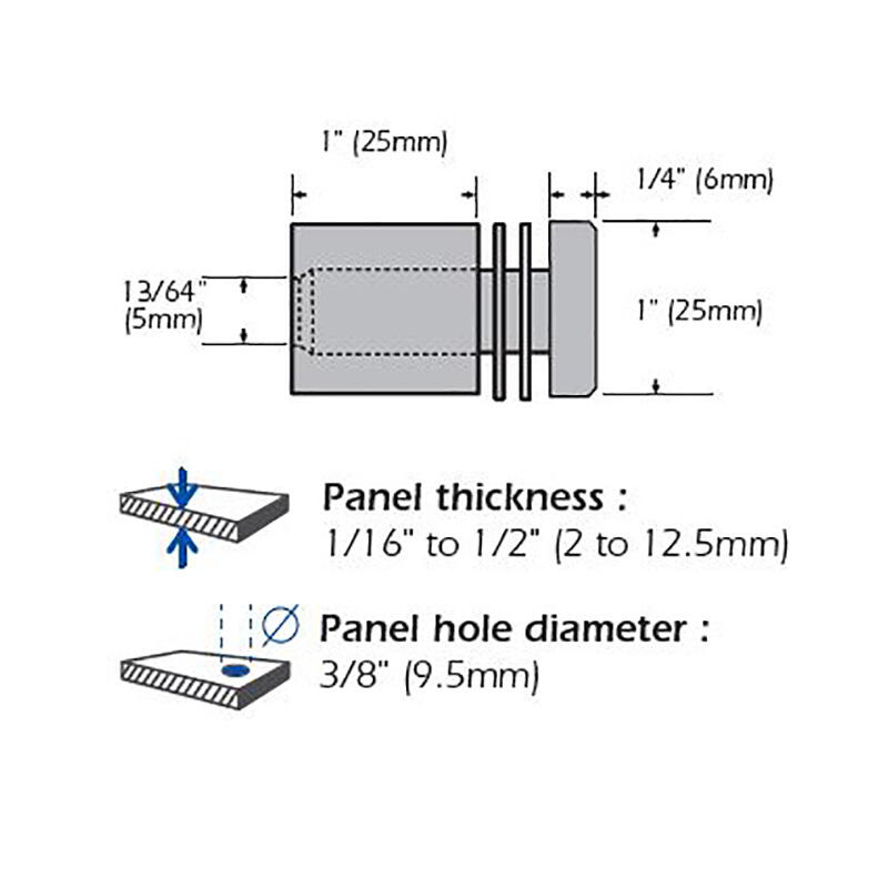 – Perçage du panneau; ∅ 9,5mm (3/8″)