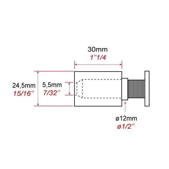 Fixation murale vissée Inox (entretoise) d'un diamètre de 24mm permet de fixer au mur vos panneaux.