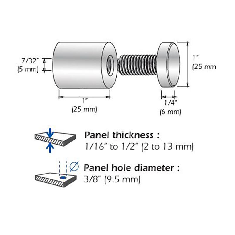 Entretoises Murales (Acrylique filetées) – ∅ 19mm (3/4″) Projection 19mm (3/4″)