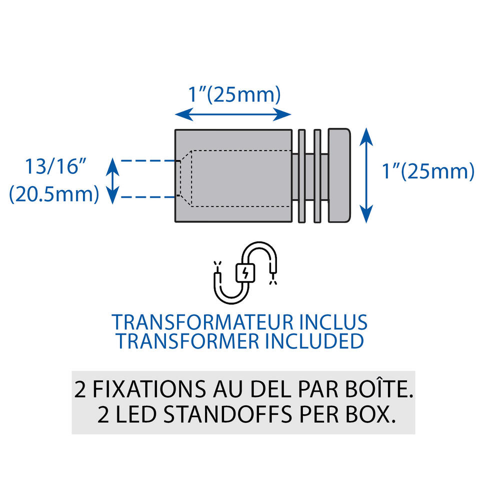 Entretoises Murales LED – ∅ 25mm (1″) Projection 25mm (1″) - Bleu