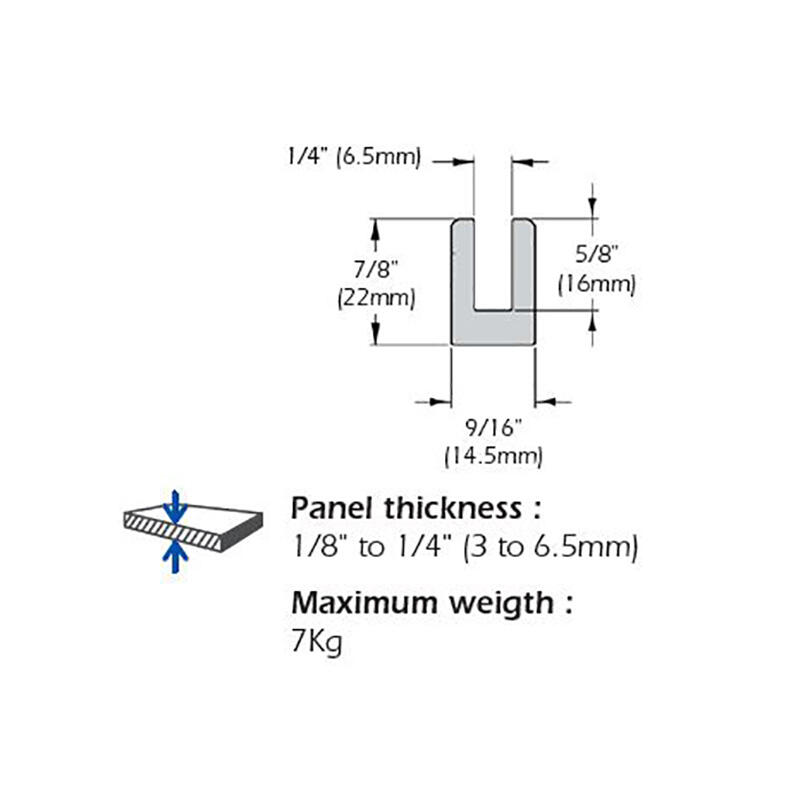 – Épaisseur du panneau; 3mm to 6,5mm (1/8″ to 1/4″)