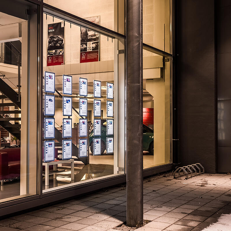 Le Porte-Affiche LED fourni par Mustang Systems augmentera votre trafic général X4 et votre trafic en magasin X2. Démarquez-vous de la concurrence et mettez vos annoces en évidences avec nos porte-affiche LED au design épuré et minimaliste.