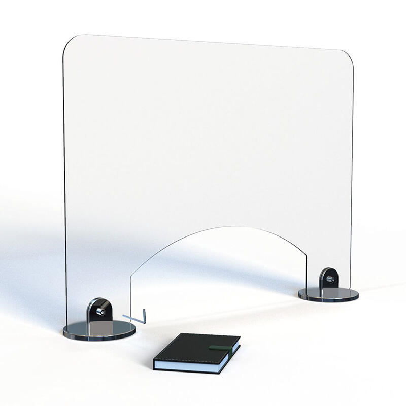 Le Support sur pied pour écran de protection fourni par Mustang Systems est conçu pour agir comme une barrière physique pour empêcher la propagation des germes et éviter le contact direct avec les personnes.
